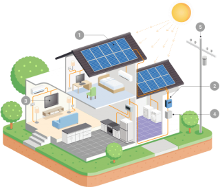 Your home uses eletricity firstly from solar panels with additional demand supplied from grid.